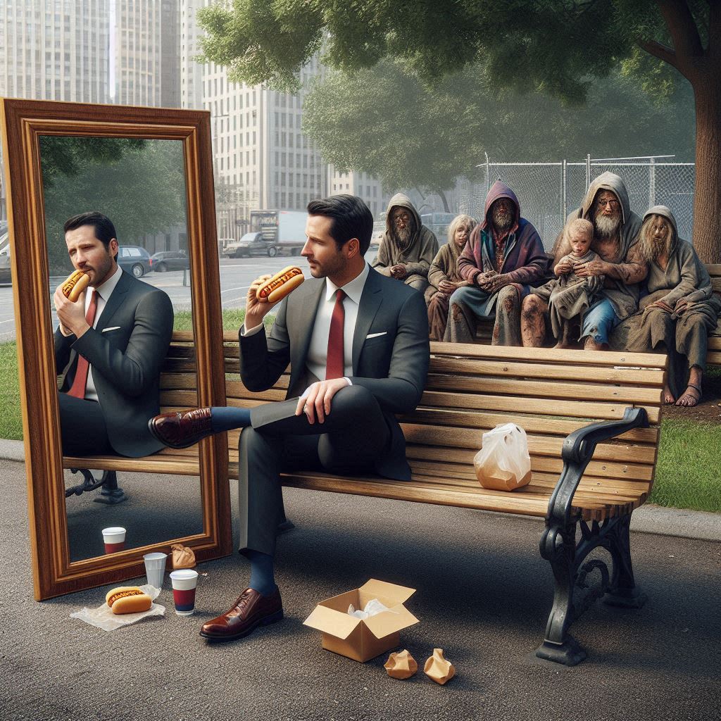 Belief that The Dream is real distorts every aspect of American culture, turning it into a fun house mirror that reflects wealth and privilege from every direction and makes poverty invisible, even when it’s sitting on the bench beside you.