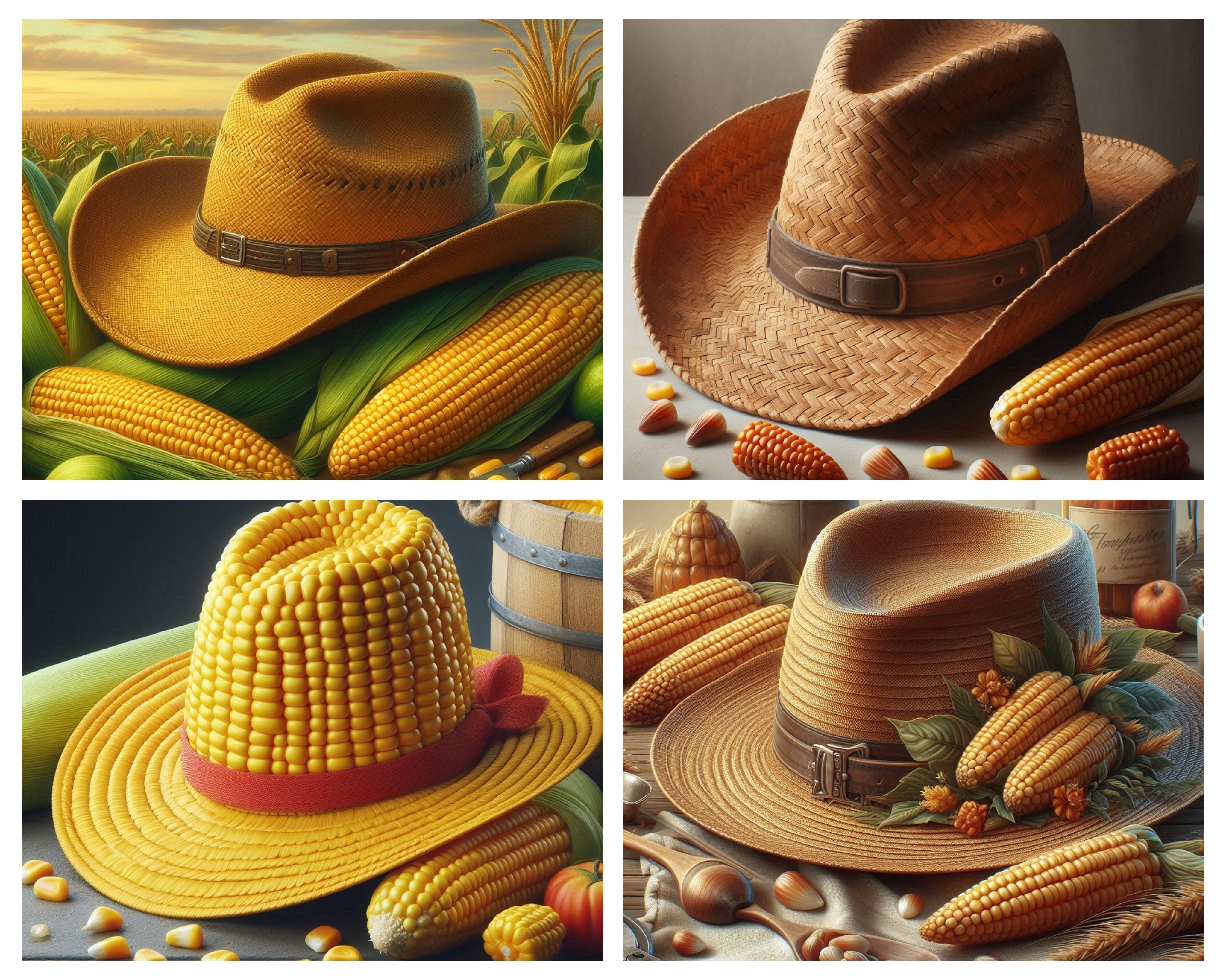 In the process of doing this, I also discovered that I care more than I thought I would about which image gets selected. Even with a good seed phrase, you still get some duds. Have a look at the candidates generated for the phrase “yellow corn hat” and see if you can spot the keeper among the chaff.