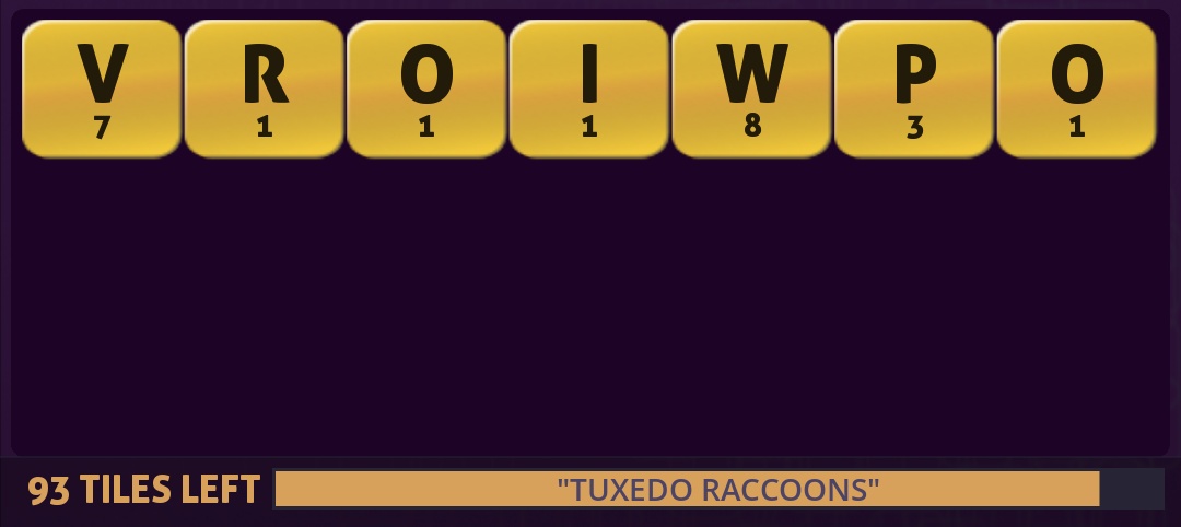 Anybody want to play “tuxedo raccoons”? If so, here’s what the opening rack looks like, so you can be sure you typed it in properly.